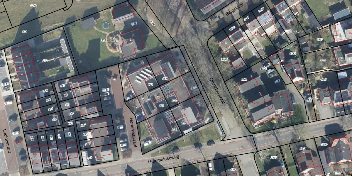 Gebruik de zoekbalk of klik op een perceel voor informatie over de adressen binnen dit perceel.