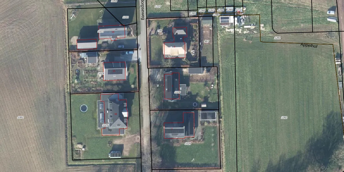 Gebruik de zoekbalk of klik op een perceel voor informatie over de adressen binnen dit perceel.