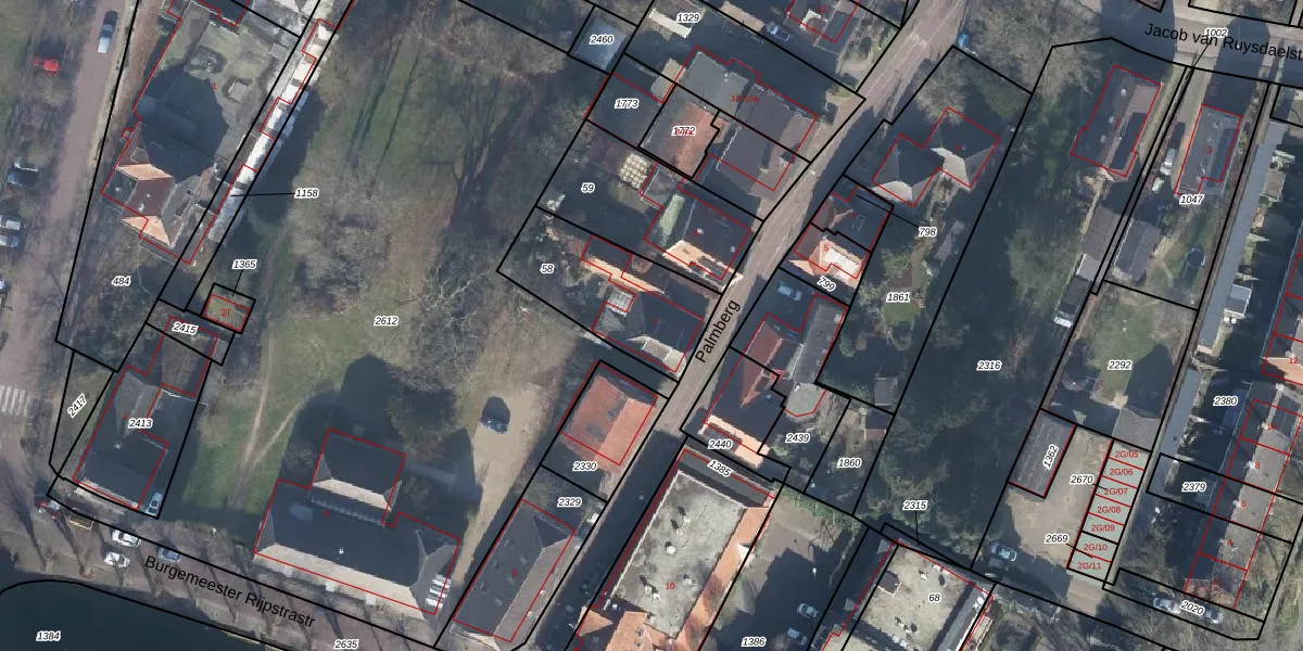 Het perceel waarop Palmberg 2 staat heeft een oppervlakte van 430 m². Dit is een groot perceel. De perceeloppervlakte wordt geregistreerd door het Kadaster. Gedetailleerde informatie over de maten van dit perceel kunt u vinden in het rapport Kadastrale kaart met maatvoering van Palmberg 2.