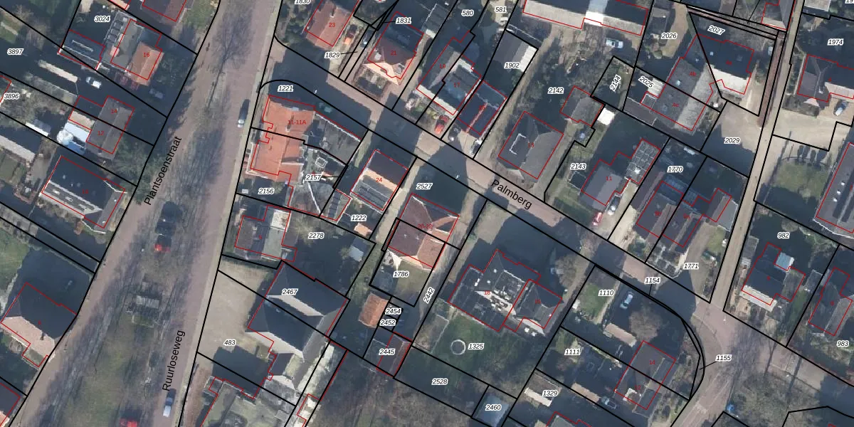 Het perceel waarop Palmberg 20 staat heeft een oppervlakte van 478 m². Dit is een groot perceel. De perceeloppervlakte wordt geregistreerd door het Kadaster. Gedetailleerde informatie over de maten van dit perceel kunt u vinden in het rapport Kadastrale kaart met maatvoering van Palmberg 20.