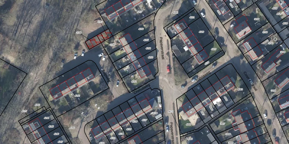 Gebruik de zoekbalk of klik op een perceel voor informatie over de adressen binnen dit perceel.