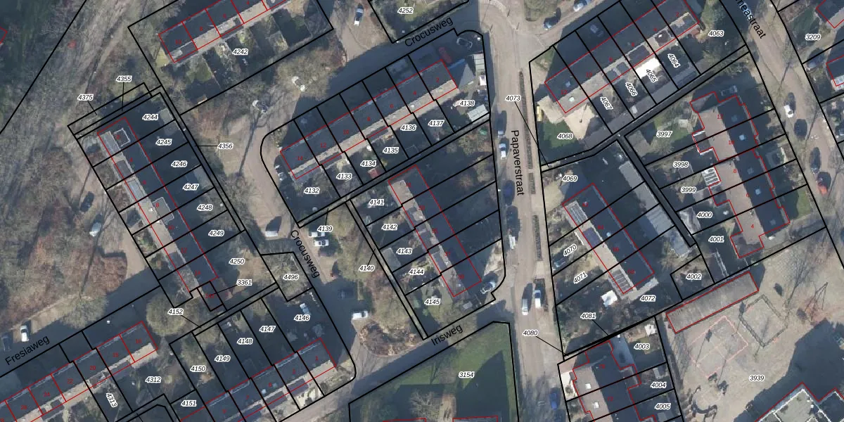 Gebruik de zoekbalk of klik op een perceel voor informatie over de adressen binnen dit perceel.