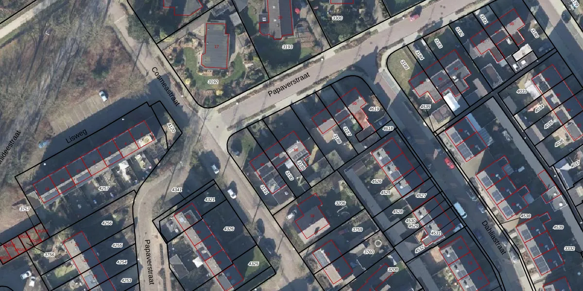 Het perceel waarop Papaverstraat 56 staat heeft een oppervlakte van 283 m². Dit is een middelgroot perceel. De perceeloppervlakte wordt geregistreerd door het Kadaster. Gedetailleerde informatie over de maten van dit perceel kunt u vinden in het rapport Kadastrale kaart met maatvoering van Papaverstraat 56.