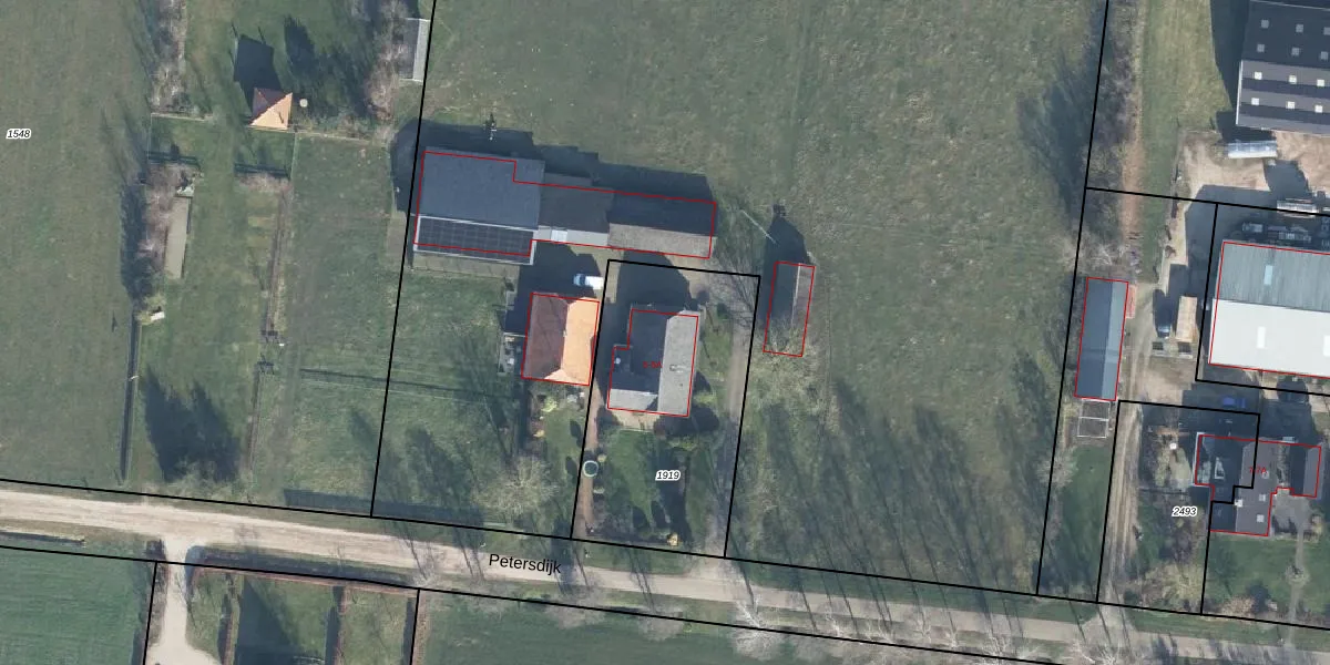 Het perceel waarop Petersdijk 5-A staat heeft een oppervlakte van 980 m². Dit is een groot perceel. De perceeloppervlakte wordt geregistreerd door het Kadaster. Gedetailleerde informatie over de maten van dit perceel kunt u vinden in het rapport Kadastrale kaart met maatvoering van Petersdijk 5-A.