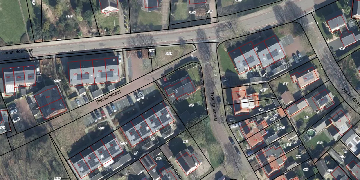 Gebruik de zoekbalk of klik op een perceel voor informatie over de adressen binnen dit perceel.