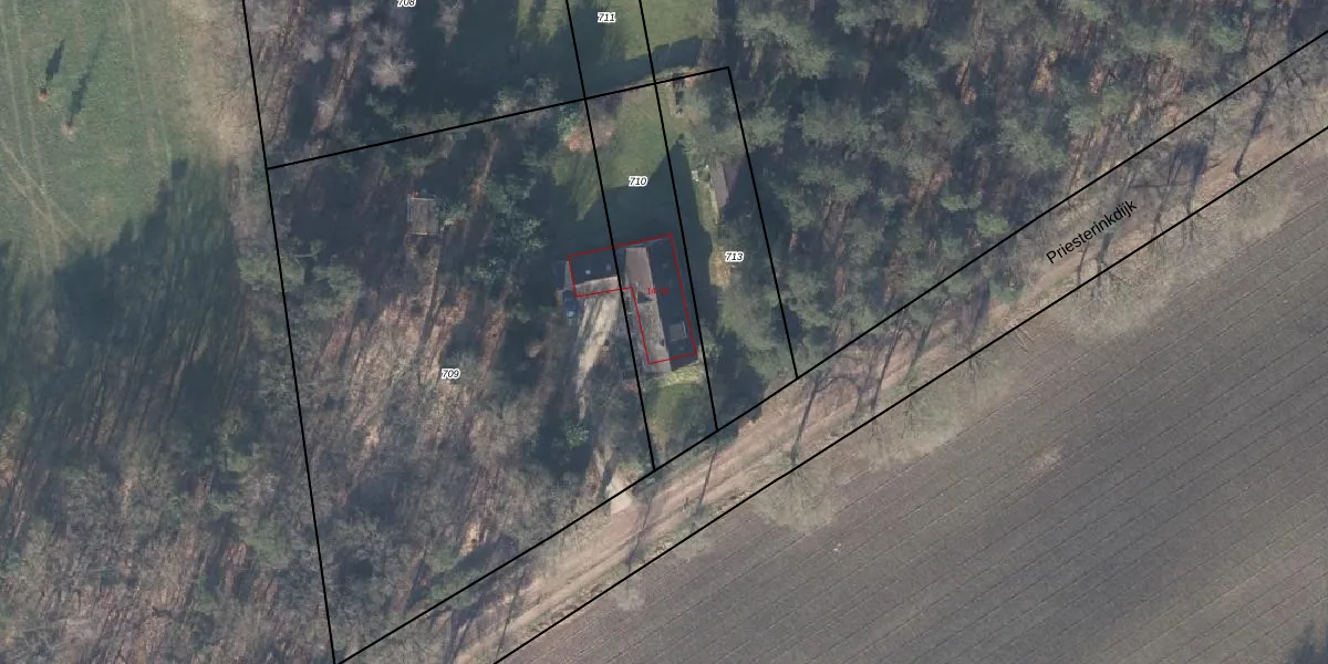 Priesterinkdijk 14 is gelegen op kadastraal perceel ZHM00X710. Deze kadastrale aanduiding is uniek en wordt gebruikt door het Kadaster om eigendomsrechten en andere zakelijke rechten vast te leggen. Het perceel maakt onderdeel uit van de kadastrale gemeente Zelhem.