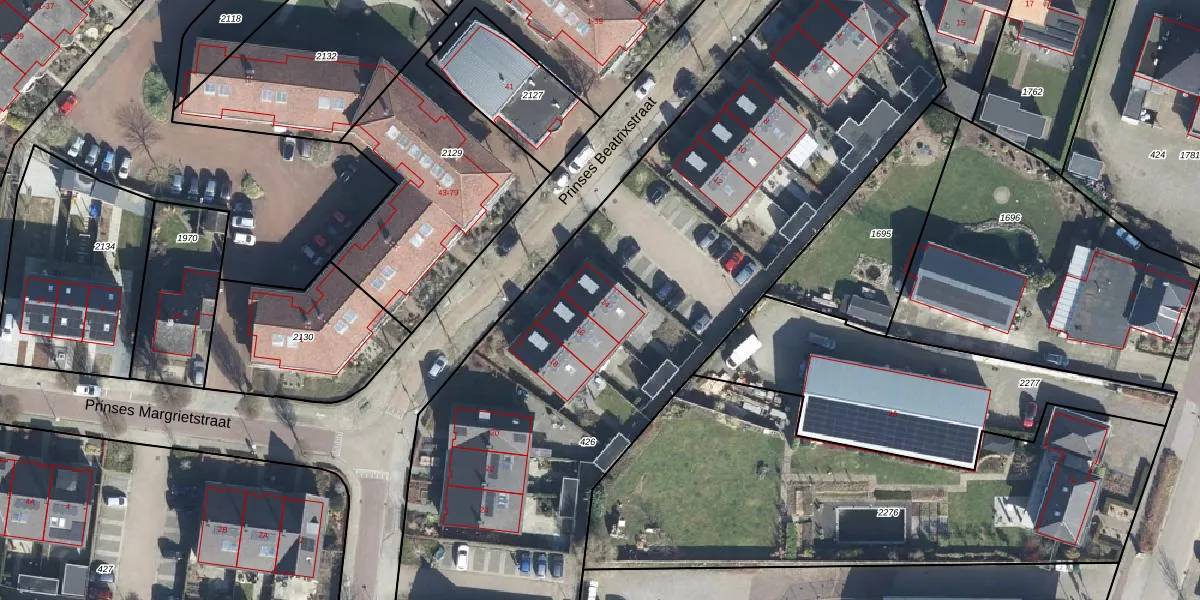 Het perceel waarop Prinses Beatrixstraat 14 staat heeft een oppervlakte van 6366 m². Dit is een zeer groot perceel. De perceeloppervlakte wordt geregistreerd door het Kadaster. Gedetailleerde informatie over de maten van dit perceel kunt u vinden in het rapport Kadastrale kaart met maatvoering van Prinses Beatrixstraat 14.