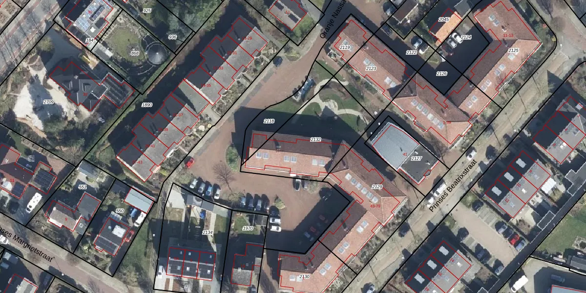 Het perceel waarop Prinses Beatrixstraat 65 staat heeft een oppervlakte van 815 m². Dit is een groot perceel. De perceeloppervlakte wordt geregistreerd door het Kadaster. Gedetailleerde informatie over de maten van dit perceel kunt u vinden in het rapport Kadastrale kaart met maatvoering van Prinses Beatrixstraat 65.
