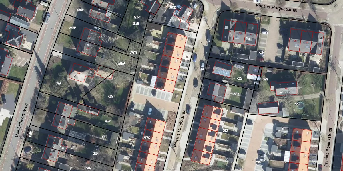 Het perceel waarop Prinses Marijkestraat 9 staat heeft een oppervlakte van 3896 m². Dit is een zeer groot perceel. De perceeloppervlakte wordt geregistreerd door het Kadaster. Gedetailleerde informatie over de maten van dit perceel kunt u vinden in het rapport Kadastrale kaart met maatvoering van Prinses Marijkestraat 9.