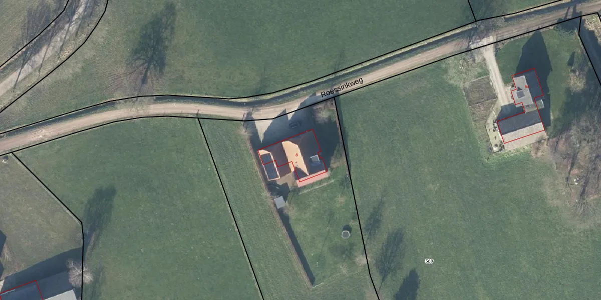 Het perceel waarop Roessinkweg 8 staat heeft een oppervlakte van 5000 m². Dit is een zeer groot perceel. De perceeloppervlakte wordt geregistreerd door het Kadaster. Gedetailleerde informatie over de maten van dit perceel kunt u vinden in het rapport Kadastrale kaart met maatvoering van Roessinkweg 8.