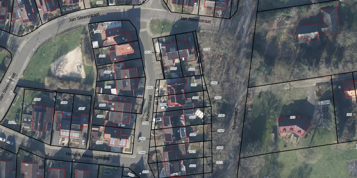Het perceel waarop Rubensstraat 2 staat heeft een oppervlakte van 221 m². Dit is een middelgroot perceel. De perceeloppervlakte wordt geregistreerd door het Kadaster. Gedetailleerde informatie over de maten van dit perceel kunt u vinden in het rapport Kadastrale kaart met maatvoering van Rubensstraat 2.