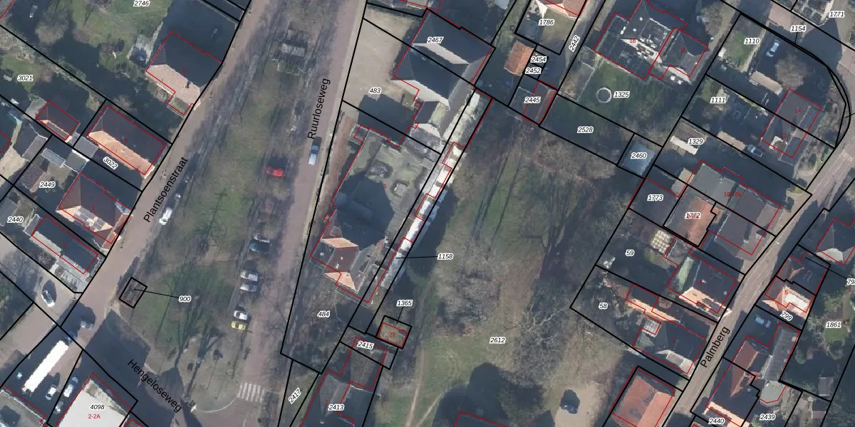 Gebruik de zoekbalk of klik op een perceel voor informatie over de adressen binnen dit perceel.