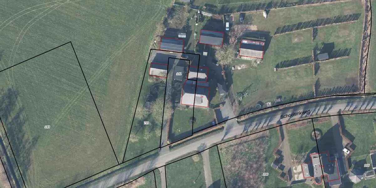 Schooltinkweg 2 is gelegen op kadastraal perceel ZHM00T141. Deze kadastrale aanduiding is uniek en wordt gebruikt door het Kadaster om eigendomsrechten en andere zakelijke rechten vast te leggen. Het perceel maakt onderdeel uit van de kadastrale gemeente Zelhem.