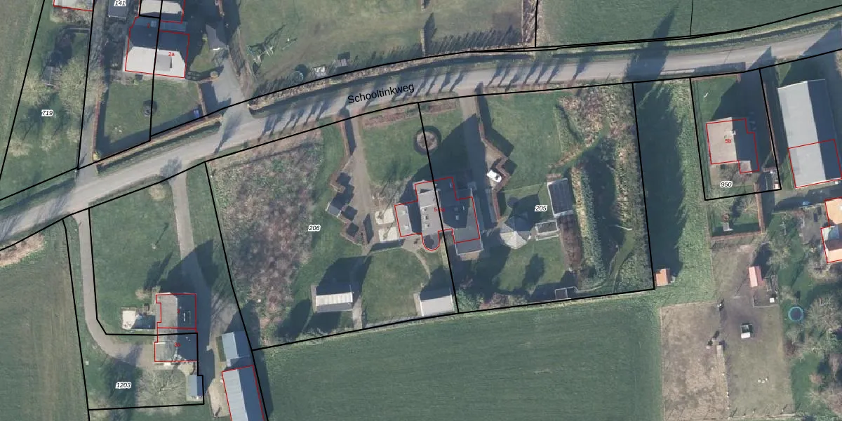 Schooltinkweg 5 is gelegen op kadastraal perceel ZHM00T206. Deze kadastrale aanduiding is uniek en wordt gebruikt door het Kadaster om eigendomsrechten en andere zakelijke rechten vast te leggen. Het perceel maakt onderdeel uit van de kadastrale gemeente Zelhem.