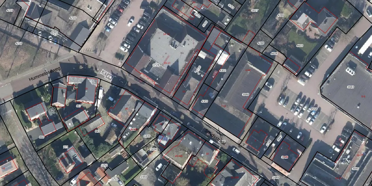 Gebruik de zoekbalk of klik op een perceel voor informatie over de adressen binnen dit perceel.