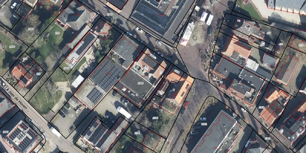 Het perceel waarop Smidsstraat 8-b staat heeft een oppervlakte van 668 m². Dit is een groot perceel. De perceeloppervlakte wordt geregistreerd door het Kadaster. Gedetailleerde informatie over de maten van dit perceel kunt u vinden in het rapport Kadastrale kaart met maatvoering van Smidsstraat 8-b.
