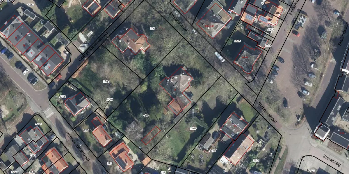 Het perceel waarop Stationsstraat 11 staat heeft een oppervlakte van 2005 m². Dit is een zeer groot perceel. De perceeloppervlakte wordt geregistreerd door het Kadaster. Gedetailleerde informatie over de maten van dit perceel kunt u vinden in het rapport Kadastrale kaart met maatvoering van Stationsstraat 11.