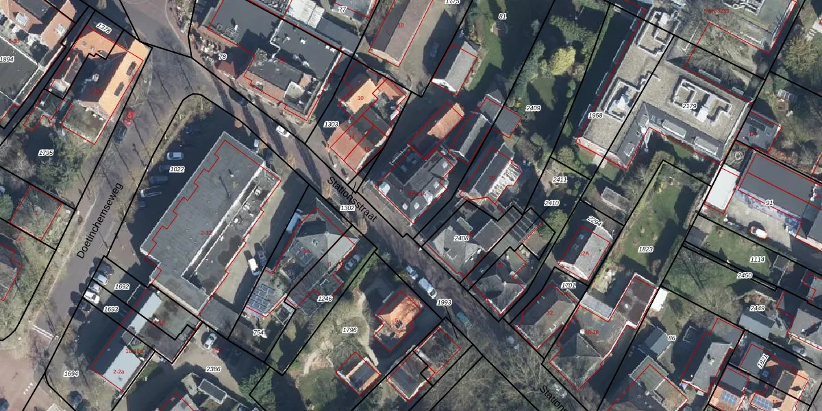 Het perceel waarop Stationsstraat 22 staat heeft een oppervlakte van 1360 m². Dit is een zeer groot perceel. De perceeloppervlakte wordt geregistreerd door het Kadaster. Gedetailleerde informatie over de maten van dit perceel kunt u vinden in het rapport Kadastrale kaart met maatvoering van Stationsstraat 22.