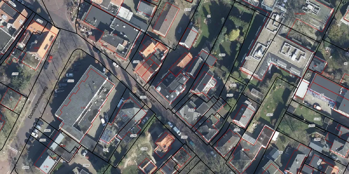 Het perceel waarop Stationsstraat 24 staat heeft een oppervlakte van 1360 m². Dit is een zeer groot perceel. De perceeloppervlakte wordt geregistreerd door het Kadaster. Gedetailleerde informatie over de maten van dit perceel kunt u vinden in het rapport Kadastrale kaart met maatvoering van Stationsstraat 24.