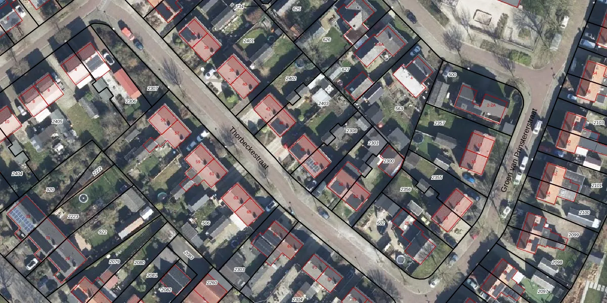 Het perceel waarop Thorbeckestraat 46 staat heeft een oppervlakte van 530 m². Dit is een groot perceel. De perceeloppervlakte wordt geregistreerd door het Kadaster. Gedetailleerde informatie over de maten van dit perceel kunt u vinden in het rapport Kadastrale kaart met maatvoering van Thorbeckestraat 46.