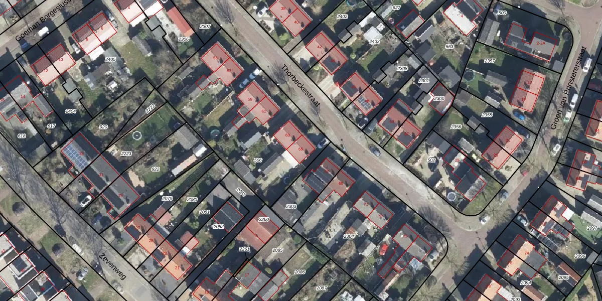 Thorbeckestraat 65 is gelegen op kadastraal perceel ZHM00O506. Deze kadastrale aanduiding is uniek en wordt gebruikt door het Kadaster om eigendomsrechten en andere zakelijke rechten vast te leggen. Het perceel maakt onderdeel uit van de kadastrale gemeente Zelhem.