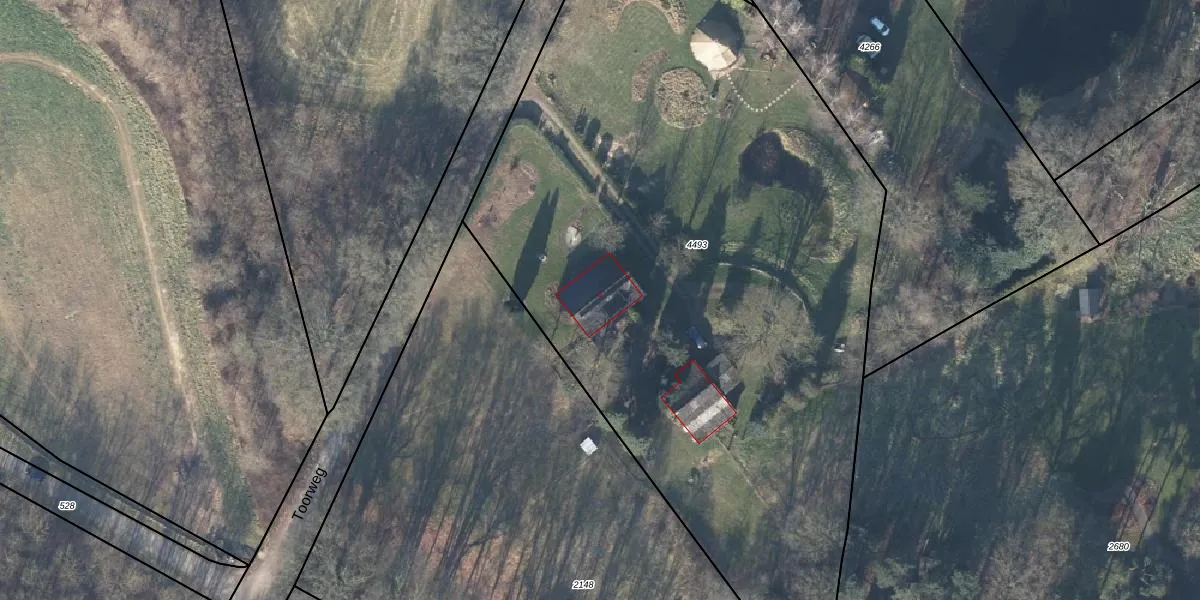 Het perceel waarop Toorweg 4 staat heeft een oppervlakte van 5033 m². Dit is een zeer groot perceel. De perceeloppervlakte wordt geregistreerd door het Kadaster. Gedetailleerde informatie over de maten van dit perceel kunt u vinden in het rapport Kadastrale kaart met maatvoering van Toorweg 4.