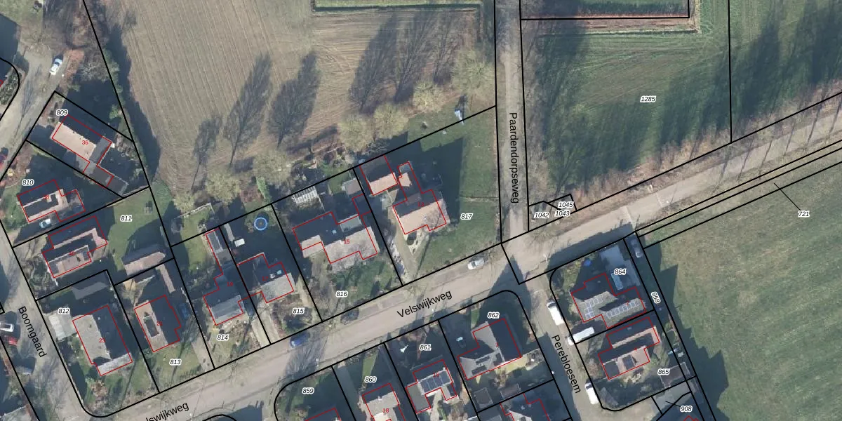 Velswijkweg 13 is gelegen op kadastraal perceel ZHM00T817. Deze kadastrale aanduiding is uniek en wordt gebruikt door het Kadaster om eigendomsrechten en andere zakelijke rechten vast te leggen. Het perceel maakt onderdeel uit van de kadastrale gemeente Zelhem.