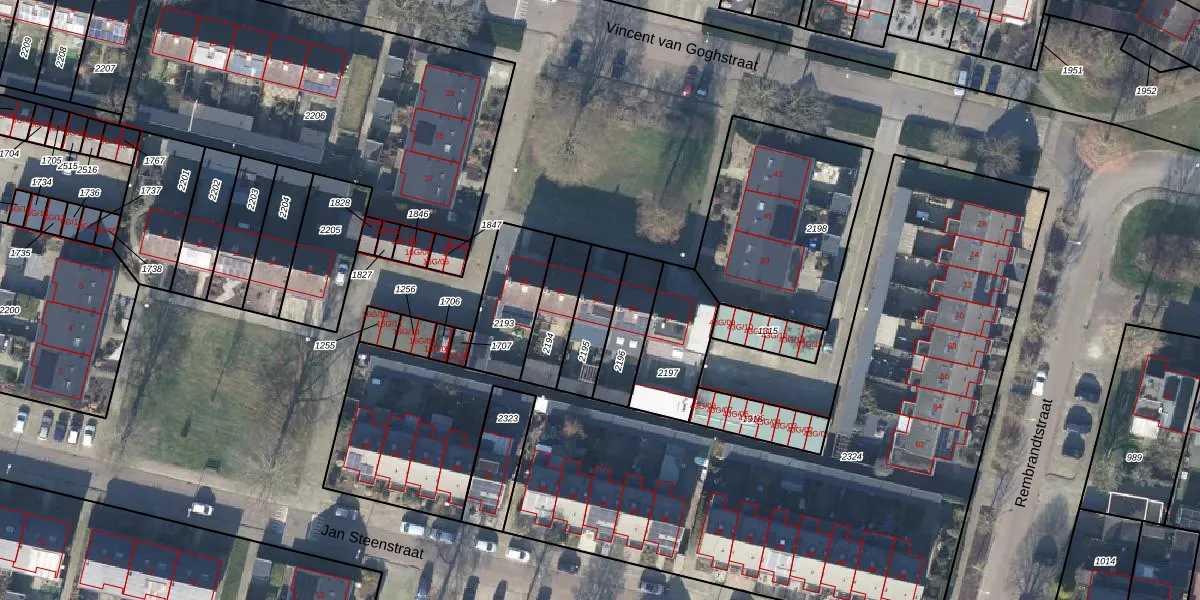Het perceel waarop Vincent van Goghstraat 33 staat heeft een oppervlakte van 155 m². Dit is een middelgroot perceel. De perceeloppervlakte wordt geregistreerd door het Kadaster. Gedetailleerde informatie over de maten van dit perceel kunt u vinden in het rapport Kadastrale kaart met maatvoering van Vincent van Goghstraat 33.