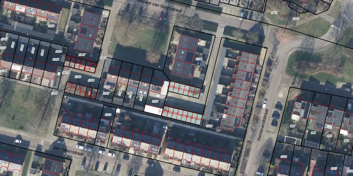 Het perceel waarop Vincent van Goghstraat 43-G-10 staat heeft een oppervlakte van 107 m². Dit is een middelgroot perceel. De perceeloppervlakte wordt geregistreerd door het Kadaster. Gedetailleerde informatie over de maten van dit perceel kunt u vinden in het rapport Kadastrale kaart met maatvoering van Vincent van Goghstraat 43-G-10.