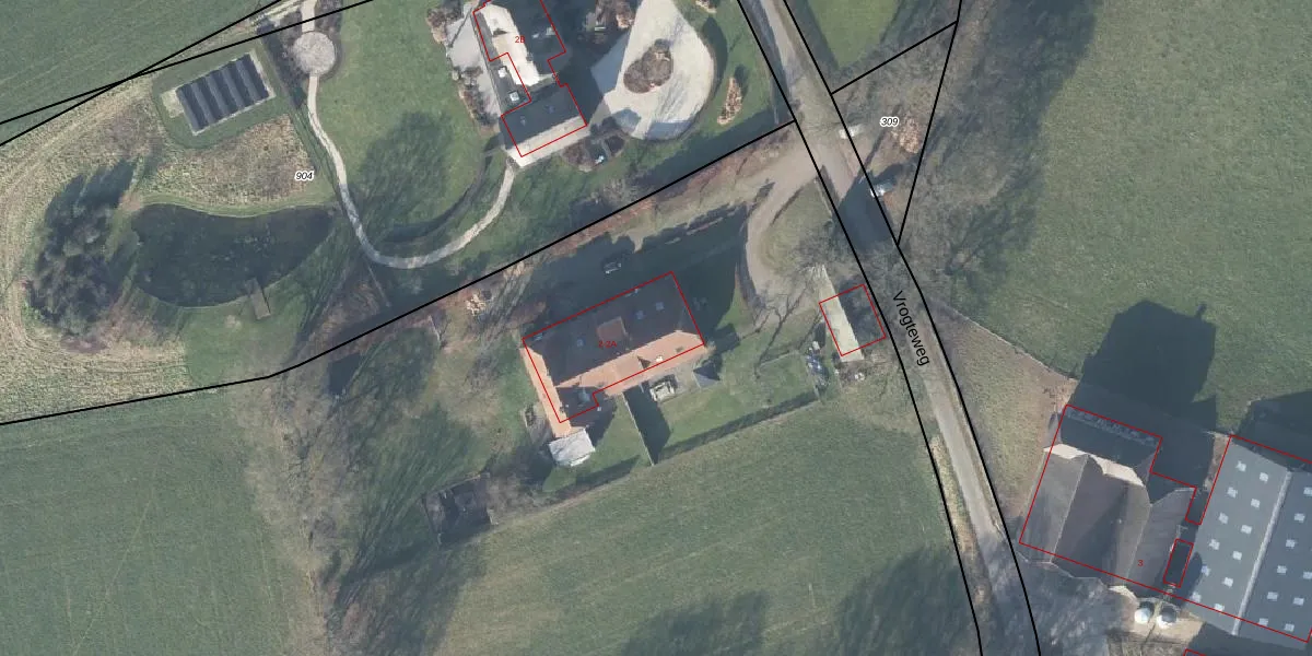 Het perceel waarop Vrogteweg 2-A staat heeft een oppervlakte van 1,7 ha. Dit is een zeer groot perceel. De perceeloppervlakte wordt geregistreerd door het Kadaster. Gedetailleerde informatie over de maten van dit perceel kunt u vinden in het rapport Kadastrale kaart met maatvoering van Vrogteweg 2-A.