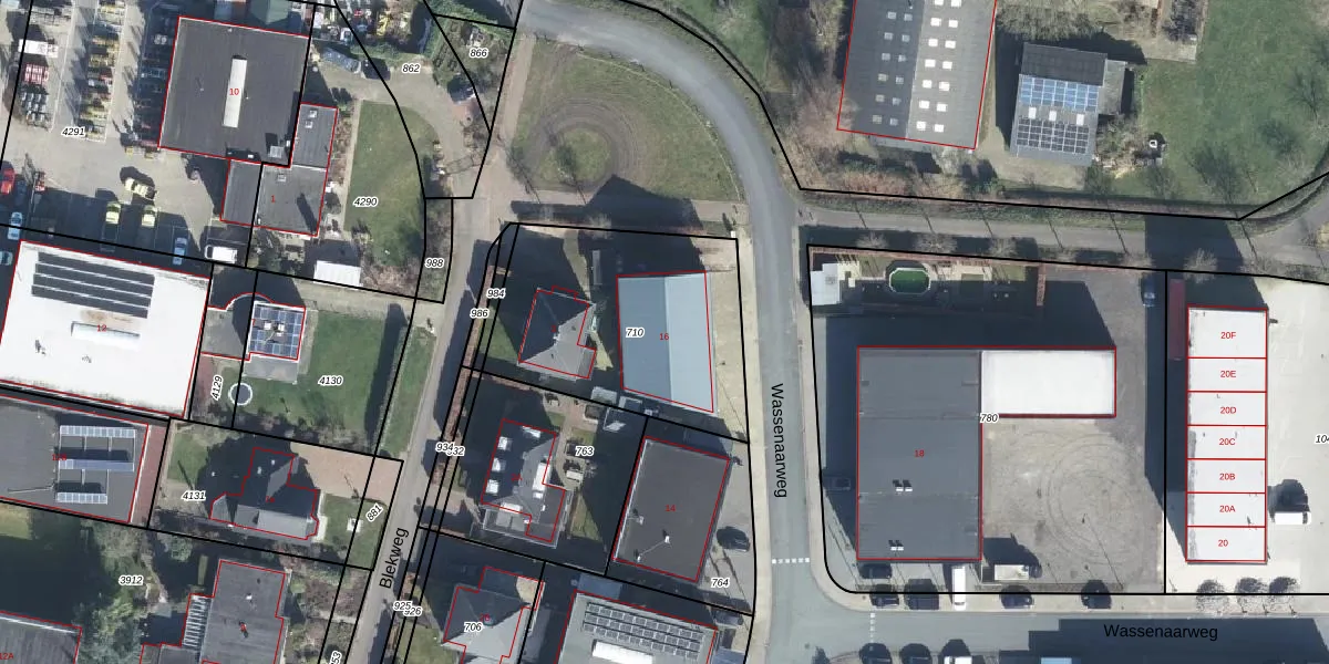 Wassenaarweg 16 is gelegen op kadastraal perceel ZHM00W710. Deze kadastrale aanduiding is uniek en wordt gebruikt door het Kadaster om eigendomsrechten en andere zakelijke rechten vast te leggen. Het perceel maakt onderdeel uit van de kadastrale gemeente Zelhem.