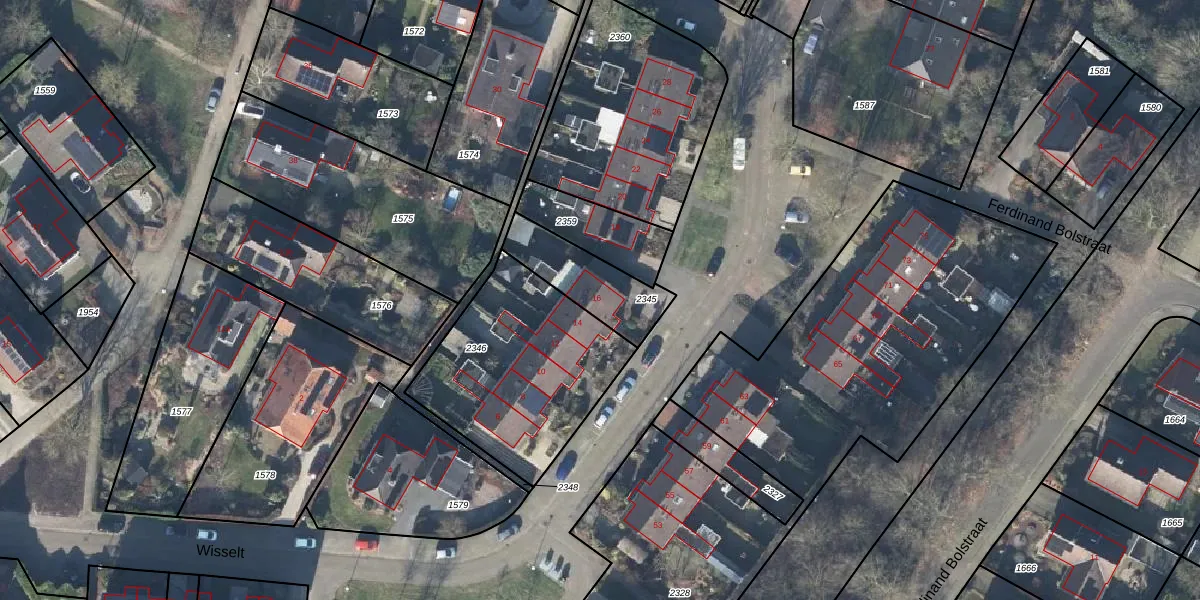 Gebruik de zoekbalk of klik op een perceel voor informatie over de adressen binnen dit perceel.