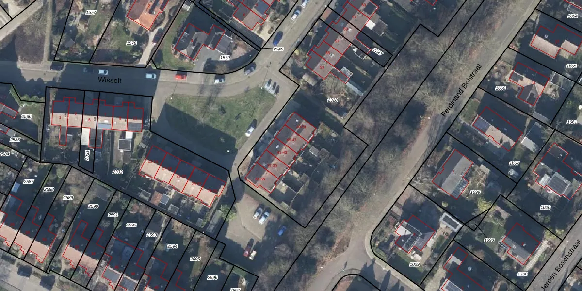 Het perceel waarop Wisselt 45 staat heeft een oppervlakte van 3431 m². Dit is een zeer groot perceel. De perceeloppervlakte wordt geregistreerd door het Kadaster. Gedetailleerde informatie over de maten van dit perceel kunt u vinden in het rapport Kadastrale kaart met maatvoering van Wisselt 45.