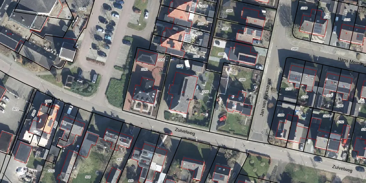 Gebruik de zoekbalk of klik op een perceel voor informatie over de adressen binnen dit perceel.