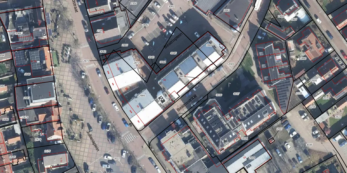 Het perceel waarop Beatrixstraat 1-s staat heeft een oppervlakte van 1430 m². Dit is een zeer groot perceel. De perceeloppervlakte wordt geregistreerd door het Kadaster. Gedetailleerde informatie over de maten van dit perceel kunt u vinden in het rapport Kadastrale kaart met maatvoering van Beatrixstraat 1-s.