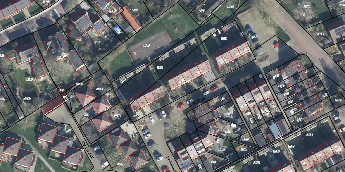 Het perceel waarop Bellefleur 18 staat heeft een oppervlakte van 1495 m². Dit is een zeer groot perceel. De perceeloppervlakte wordt geregistreerd door het Kadaster. Gedetailleerde informatie over de maten van dit perceel kunt u vinden in het rapport Kadastrale kaart met maatvoering van Bellefleur 18.