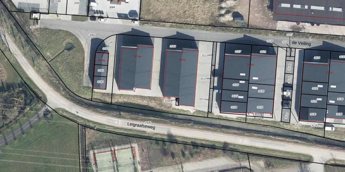 Het perceel waarop de Veiling 20-d staat heeft een oppervlakte van 2405 m². Dit is een zeer groot perceel. De perceeloppervlakte wordt geregistreerd door het Kadaster. Gedetailleerde informatie over de maten van dit perceel kunt u vinden in het rapport Kadastrale kaart met maatvoering van de Veiling 20-d.
