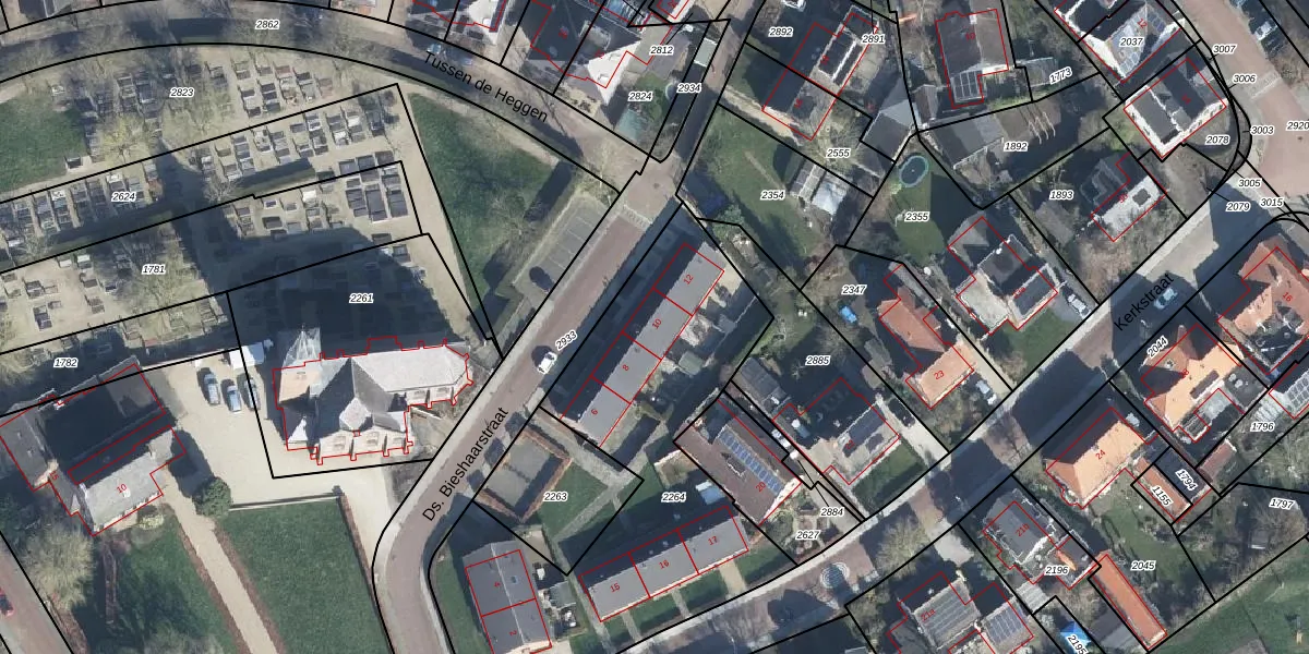Het perceel waarop Ds. Bieshaarstraat 10 staat heeft een oppervlakte van 1865 m². Dit is een zeer groot perceel. De perceeloppervlakte wordt geregistreerd door het Kadaster. Gedetailleerde informatie over de maten van dit perceel kunt u vinden in het rapport Kadastrale kaart met maatvoering van Ds. Bieshaarstraat 10.