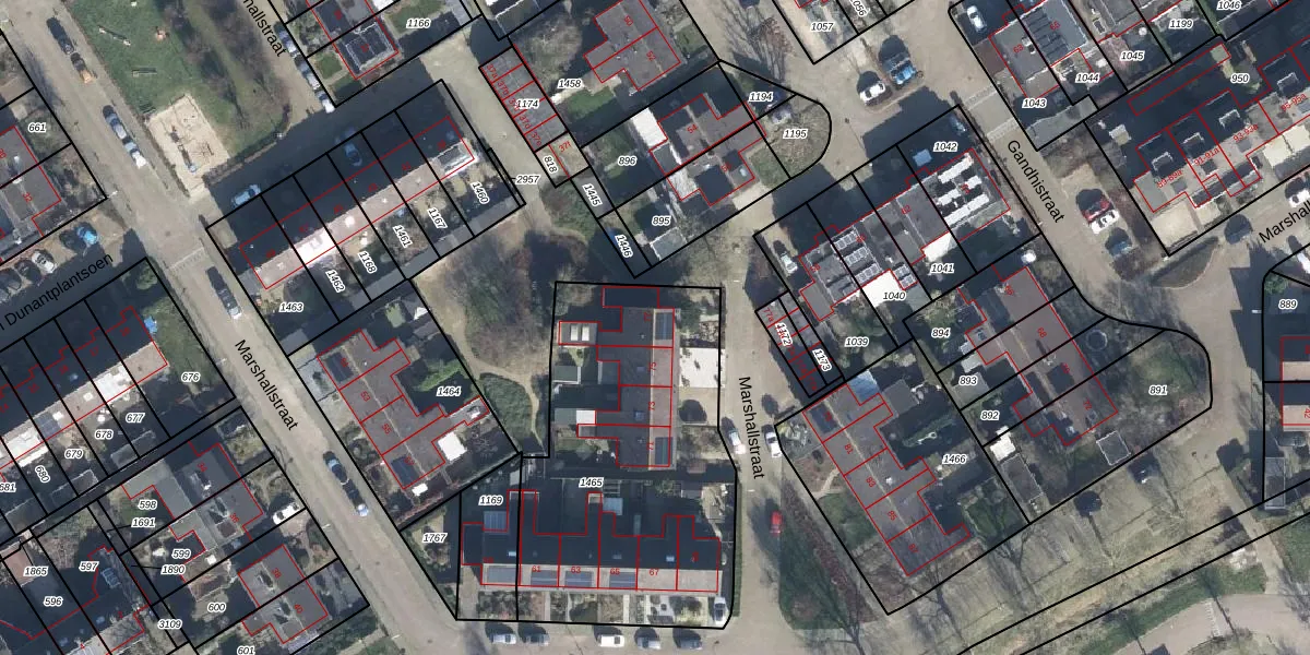 Het perceel waarop Marshallstraat 77 staat heeft een oppervlakte van 1510 m². Dit is een zeer groot perceel. De perceeloppervlakte wordt geregistreerd door het Kadaster. Gedetailleerde informatie over de maten van dit perceel kunt u vinden in het rapport Kadastrale kaart met maatvoering van Marshallstraat 77.