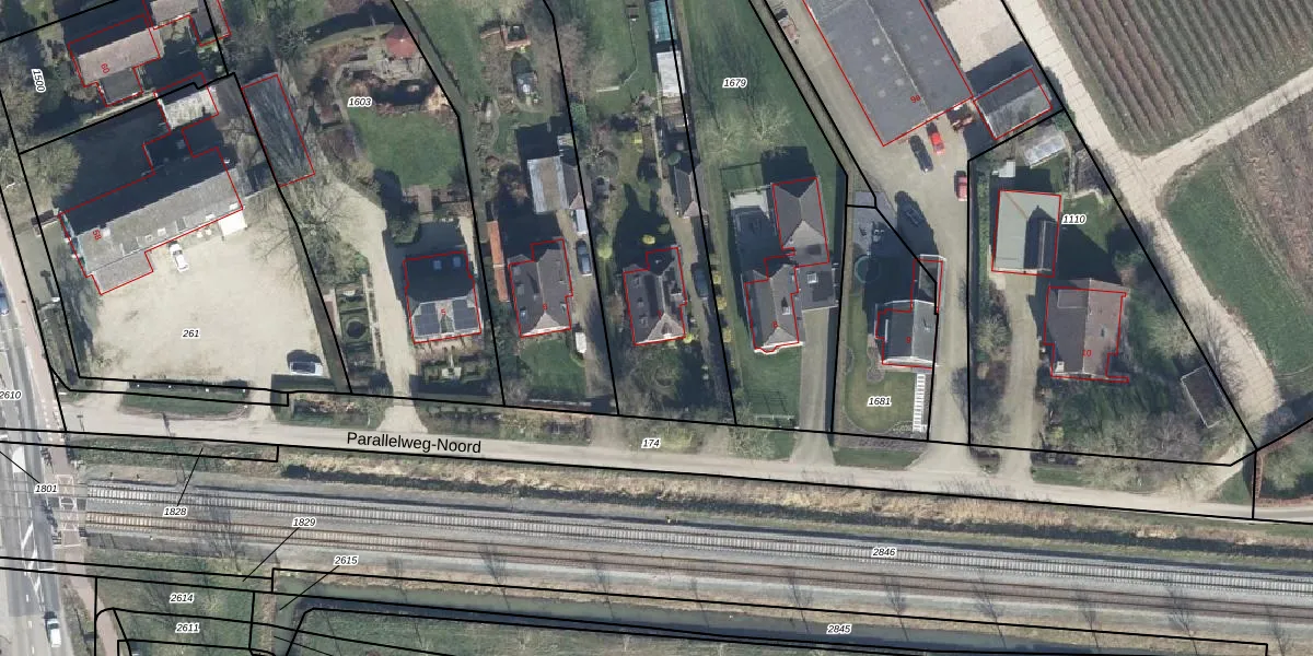 Het perceel waarop Parallelweg-Noord 7 staat heeft een oppervlakte van 2825 m². Dit is een zeer groot perceel. De perceeloppervlakte wordt geregistreerd door het Kadaster. Gedetailleerde informatie over de maten van dit perceel kunt u vinden in het rapport Kadastrale kaart met maatvoering van Parallelweg-Noord 7.