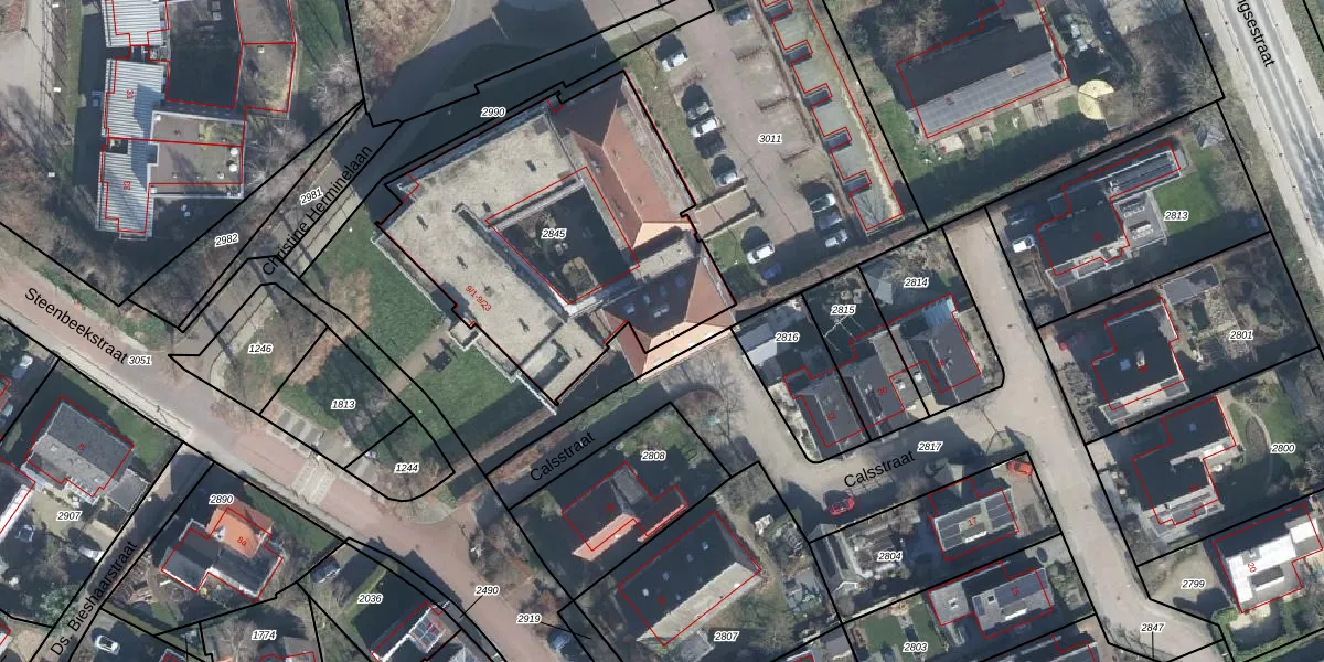 Het perceel waarop Steenbeekstraat 9-11 staat heeft een oppervlakte van 1500 m². Dit is een zeer groot perceel. De perceeloppervlakte wordt geregistreerd door het Kadaster. Gedetailleerde informatie over de maten van dit perceel kunt u vinden in het rapport Kadastrale kaart met maatvoering van Steenbeekstraat 9-11.