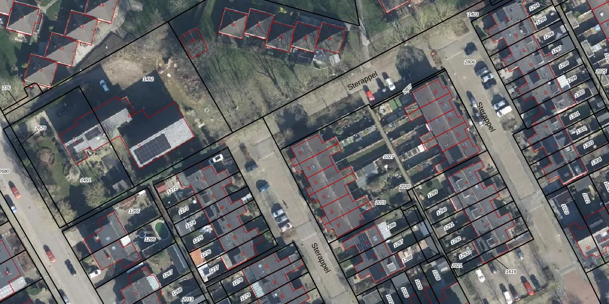Sterappel 21 is gelegen op kadastraal perceel VBG02F1027. Deze kadastrale aanduiding is uniek en wordt gebruikt door het Kadaster om eigendomsrechten en andere zakelijke rechten vast te leggen. Het perceel maakt onderdeel uit van de kadastrale gemeente Valburg.