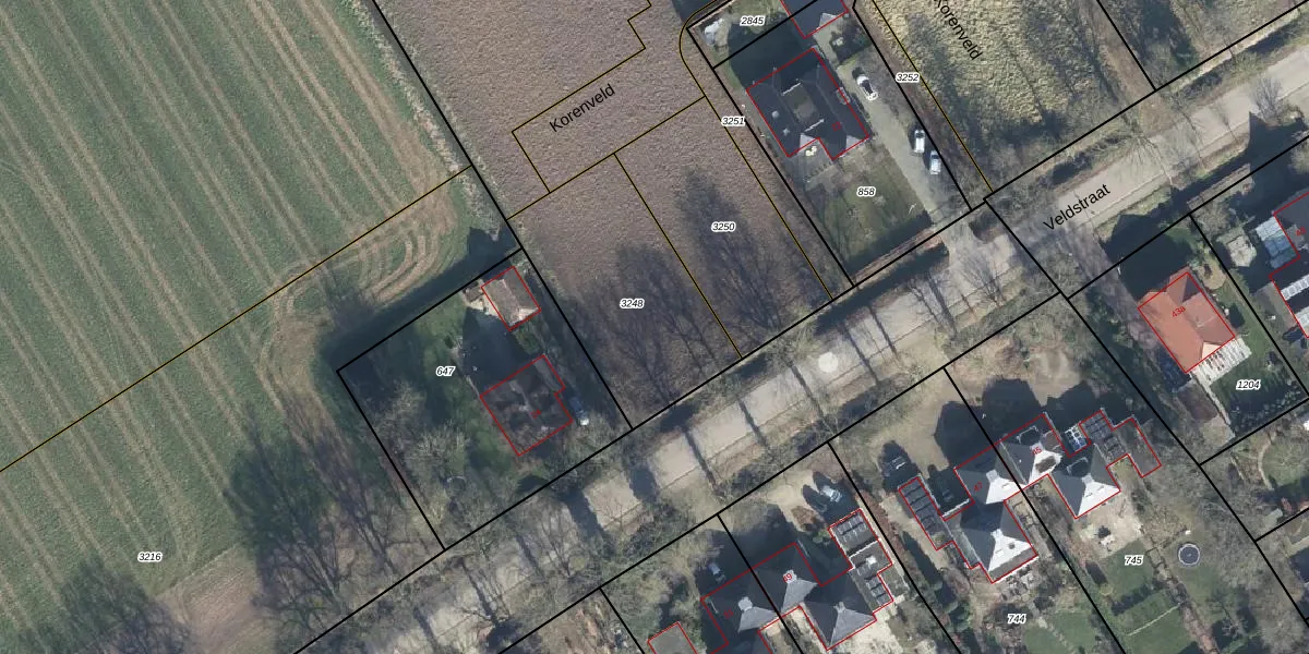 Het perceel waarop Veldstraat 22-b staat heeft een oppervlakte van 734 m². Dit is een groot perceel. De perceeloppervlakte wordt geregistreerd door het Kadaster. Gedetailleerde informatie over de maten van dit perceel kunt u vinden in het rapport Kadastrale kaart met maatvoering van Veldstraat 22-b.