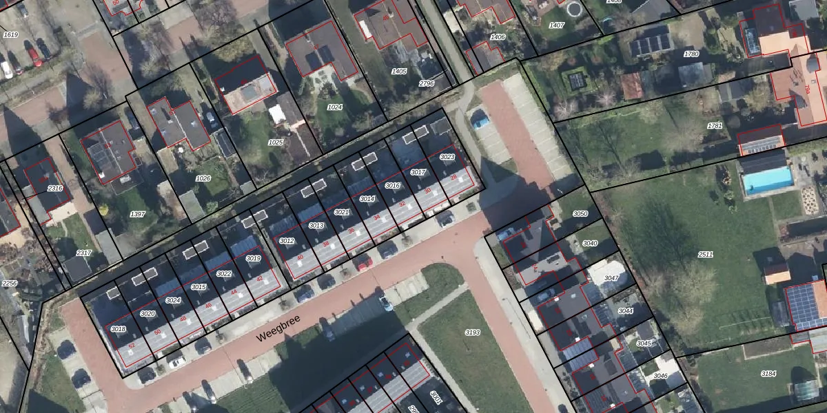 Weegbree 32 is gelegen op kadastraal perceel VBG02F3016. Deze kadastrale aanduiding is uniek en wordt gebruikt door het Kadaster om eigendomsrechten en andere zakelijke rechten vast te leggen. Het perceel maakt onderdeel uit van de kadastrale gemeente Valburg.