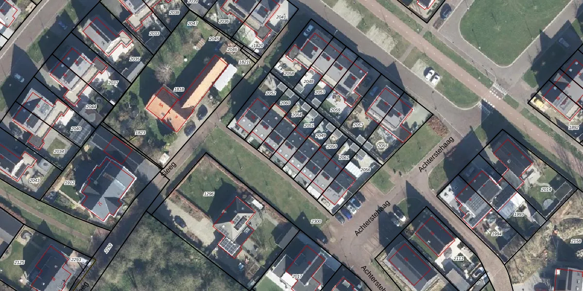 Gebruik de zoekbalk of klik op een perceel voor informatie over de adressen binnen dit perceel.