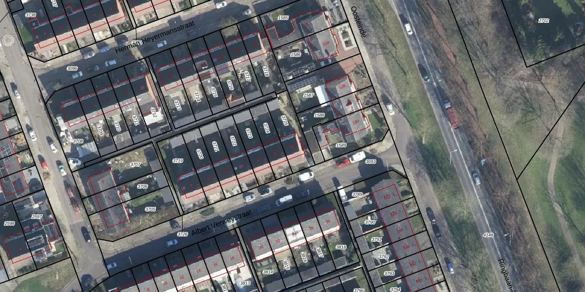 Gebruik de zoekbalk of klik op een perceel voor informatie over de adressen binnen dit perceel.