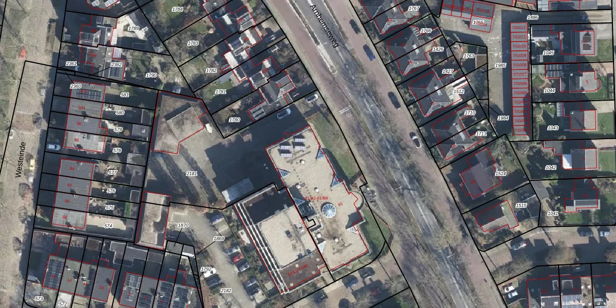 Het perceel waarop Arnhemseweg 81-A3 staat heeft een oppervlakte van 2437 m². Dit is een zeer groot perceel. De perceeloppervlakte wordt geregistreerd door het Kadaster. Gedetailleerde informatie over de maten van dit perceel kunt u vinden in het rapport Kadastrale kaart met maatvoering van Arnhemseweg 81-A3.