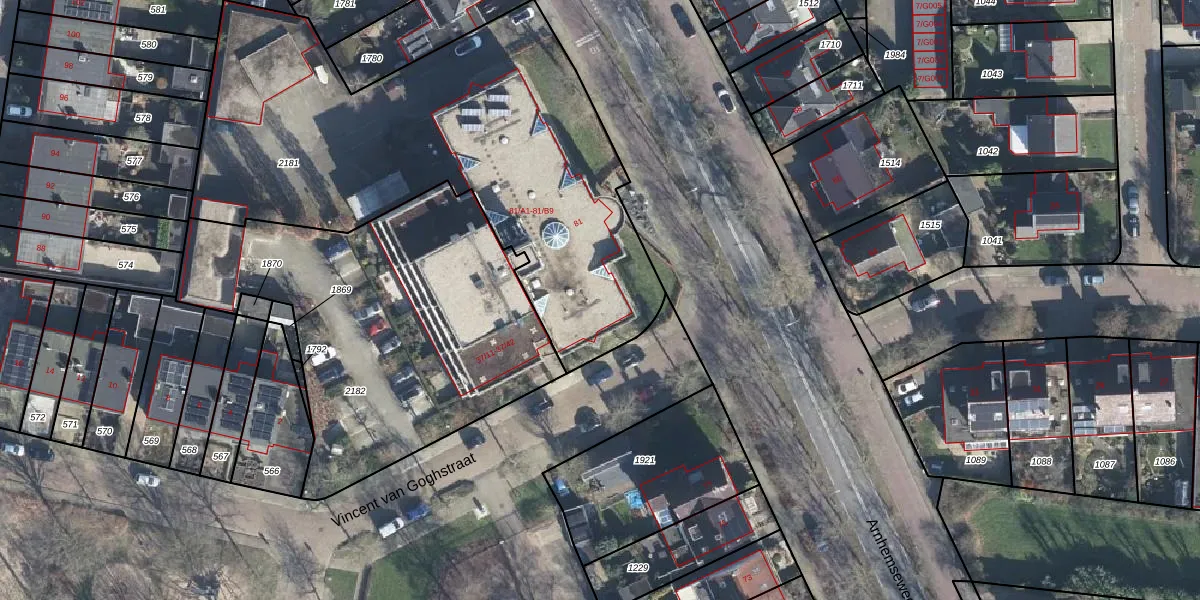 Het perceel waarop Arnhemseweg 81-A7 staat heeft een oppervlakte van 2437 m². Dit is een zeer groot perceel. De perceeloppervlakte wordt geregistreerd door het Kadaster. Gedetailleerde informatie over de maten van dit perceel kunt u vinden in het rapport Kadastrale kaart met maatvoering van Arnhemseweg 81-A7.