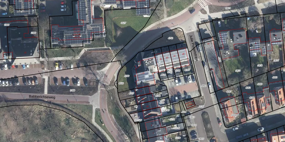Het perceel waarop Babberichseweg 1-G staat heeft een oppervlakte van 977 m². Dit is een groot perceel. De perceeloppervlakte wordt geregistreerd door het Kadaster. Gedetailleerde informatie over de maten van dit perceel kunt u vinden in het rapport Kadastrale kaart met maatvoering van Babberichseweg 1-G.