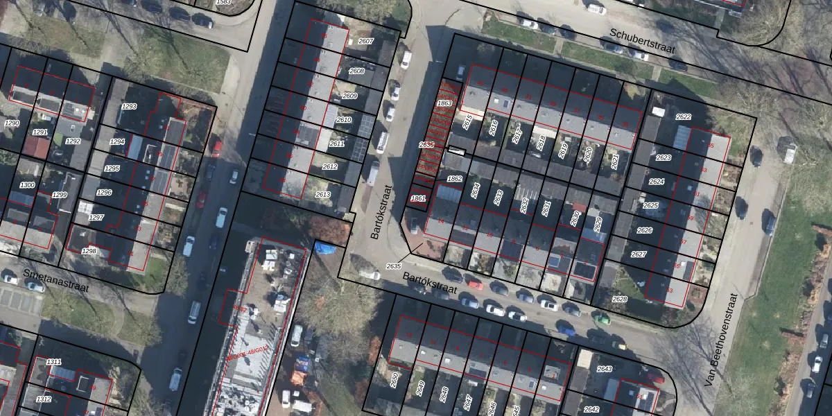 Bartókstraat 14-G001 is gelegen op kadastraal perceel ZVN02H1861. Deze kadastrale aanduiding is uniek en wordt gebruikt door het Kadaster om eigendomsrechten en andere zakelijke rechten vast te leggen. Het perceel maakt onderdeel uit van de kadastrale gemeente Oud-Zevenaar.